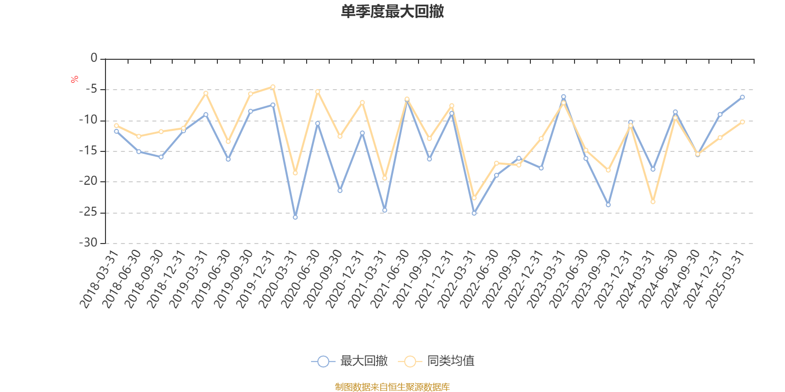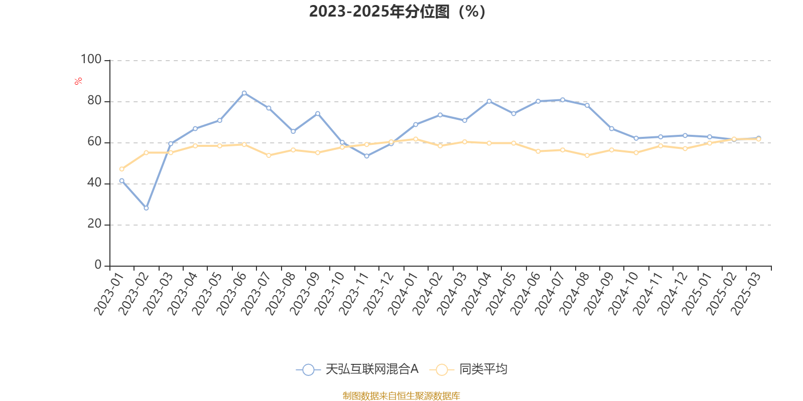 通过所选区间该基金净值增长率分位图,可以观察该基金与同类基金业绩比较情况。图为坐标原点到区间内某时点的净值增长率在同类基金中的分位数。