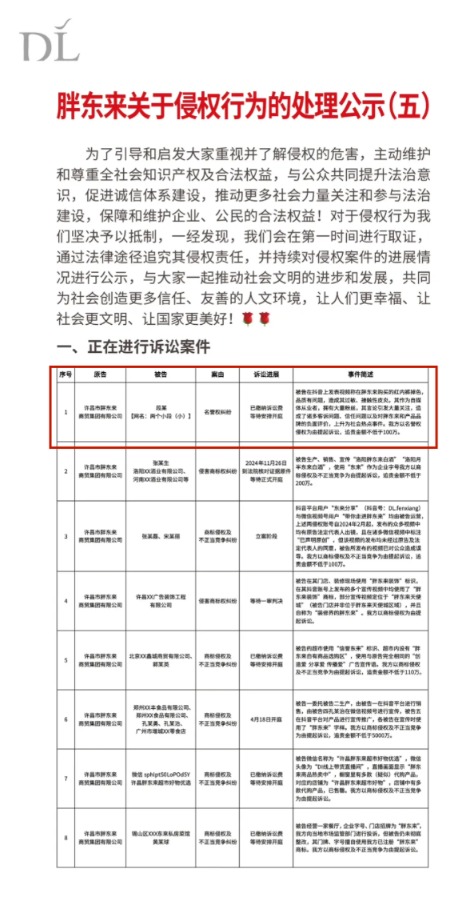 4月5日晚间,胖东来商贸集团在微信公众号上发布关于侵权行为的处理公示。其中,胖东来以名誉权侵权为由,对“红内裤”事件博主段某(网名为“两个小段”)提起诉讼。