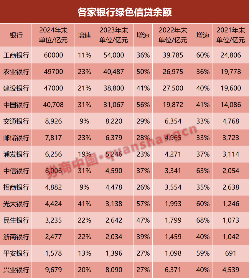 年报显示,工商银行2024年末的绿色贷款余额(金融监管总局口径)突破6万亿元,成为全球最大绿色信贷银行。