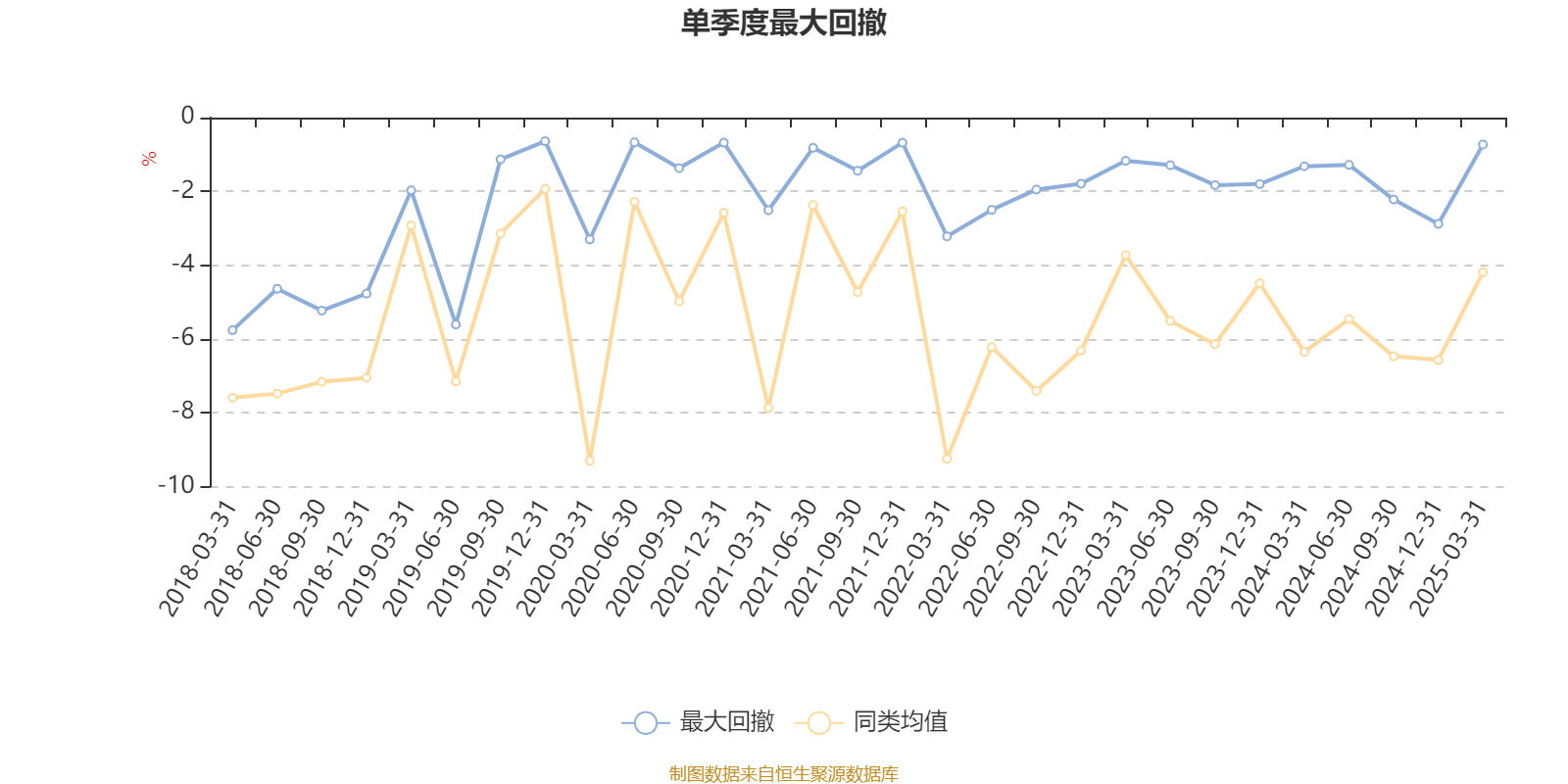 截至4月3日,基金近三年最大回撤为4.14%,同类可比基金排名99/102。单季度最大回撤出现在2018年一季度,为5.76%。
