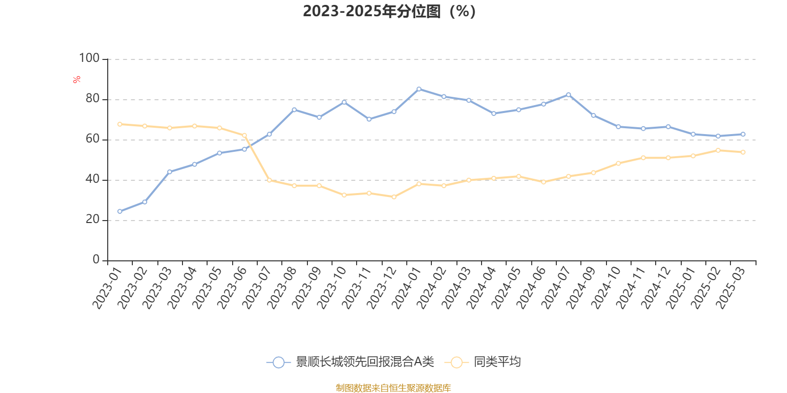 通过所选区间该基金净值增长率分位图,可以观察该基金与同类基金业绩比较情况。图为坐标原点到区间内某时点的净值增长率在同类基金中的分位数。