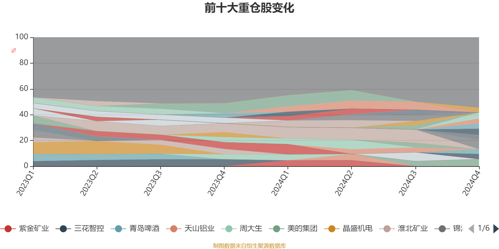 截至2024年末,基金十大重仓股分别是长江电力、美的集团、招商银行、中国神华、尚太科技、申能股份、国投电力、瀚蓝环境、粤高速A、南方传媒。