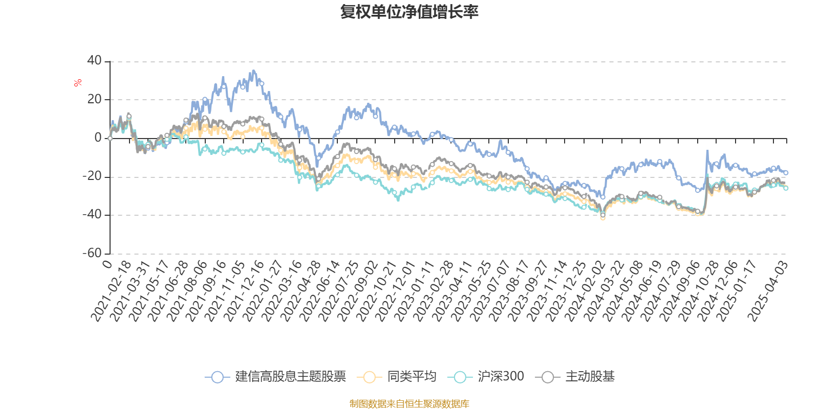 截至4月3日,建信高股息主题股票近三个月复权单位净值增长率为0.37%,位于同类可比基金150/166;近半年复权单位净值增长率为-6.84%,位于同类可比基金143/166;近一年复权单位净值增长率为-2.83%,位于同类可比基金148/165;近三年复权单位净值增长率为-21.43%,位于同类可比基金120/156。