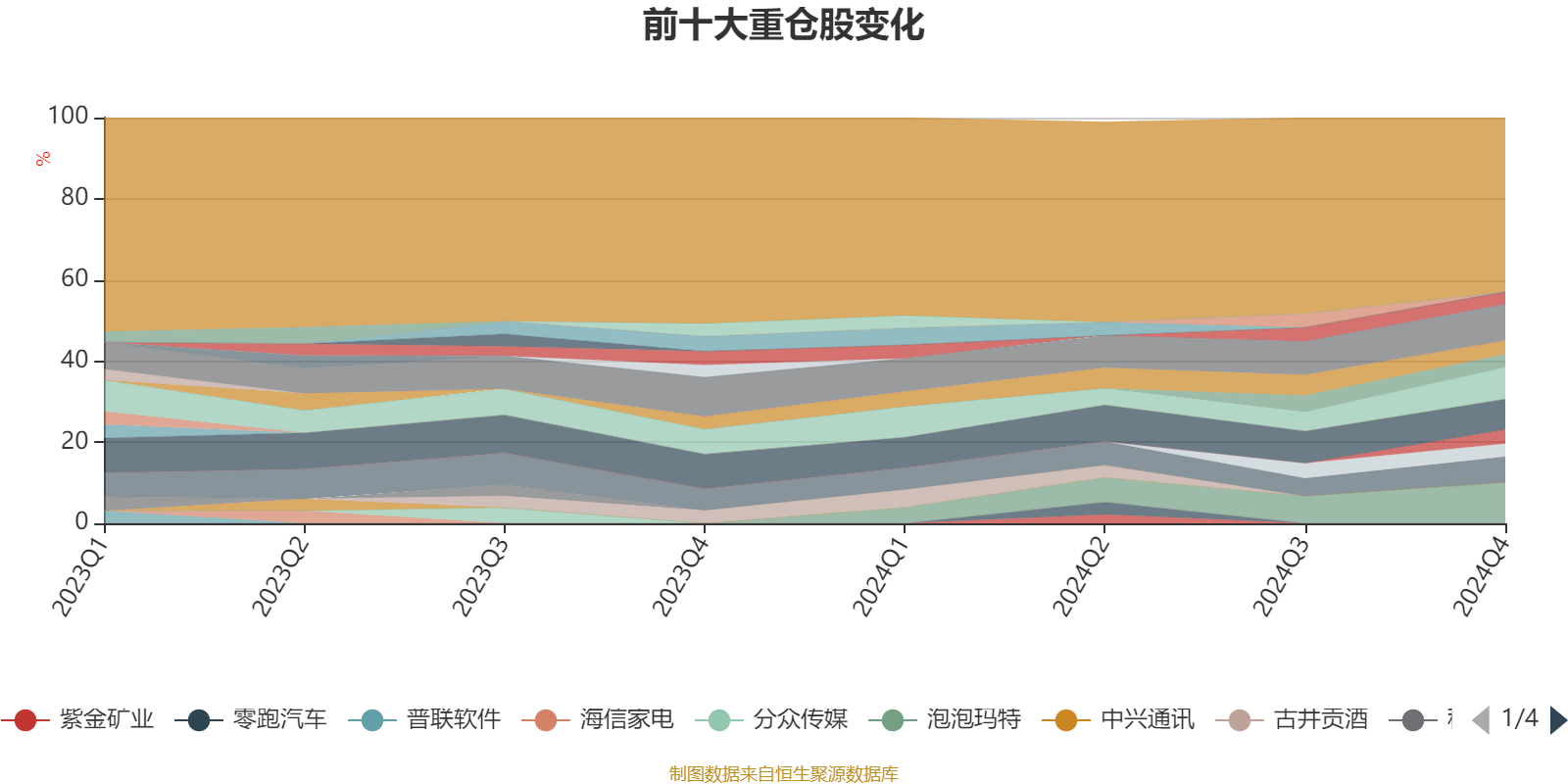 截至2024年末,基金十大重仓股分别是泡泡玛特、贵州茅台、宁德时代、腾讯控股、美团-W、美好医疗、中际旭创、亨通光电、阿里巴巴-W、金山办公。