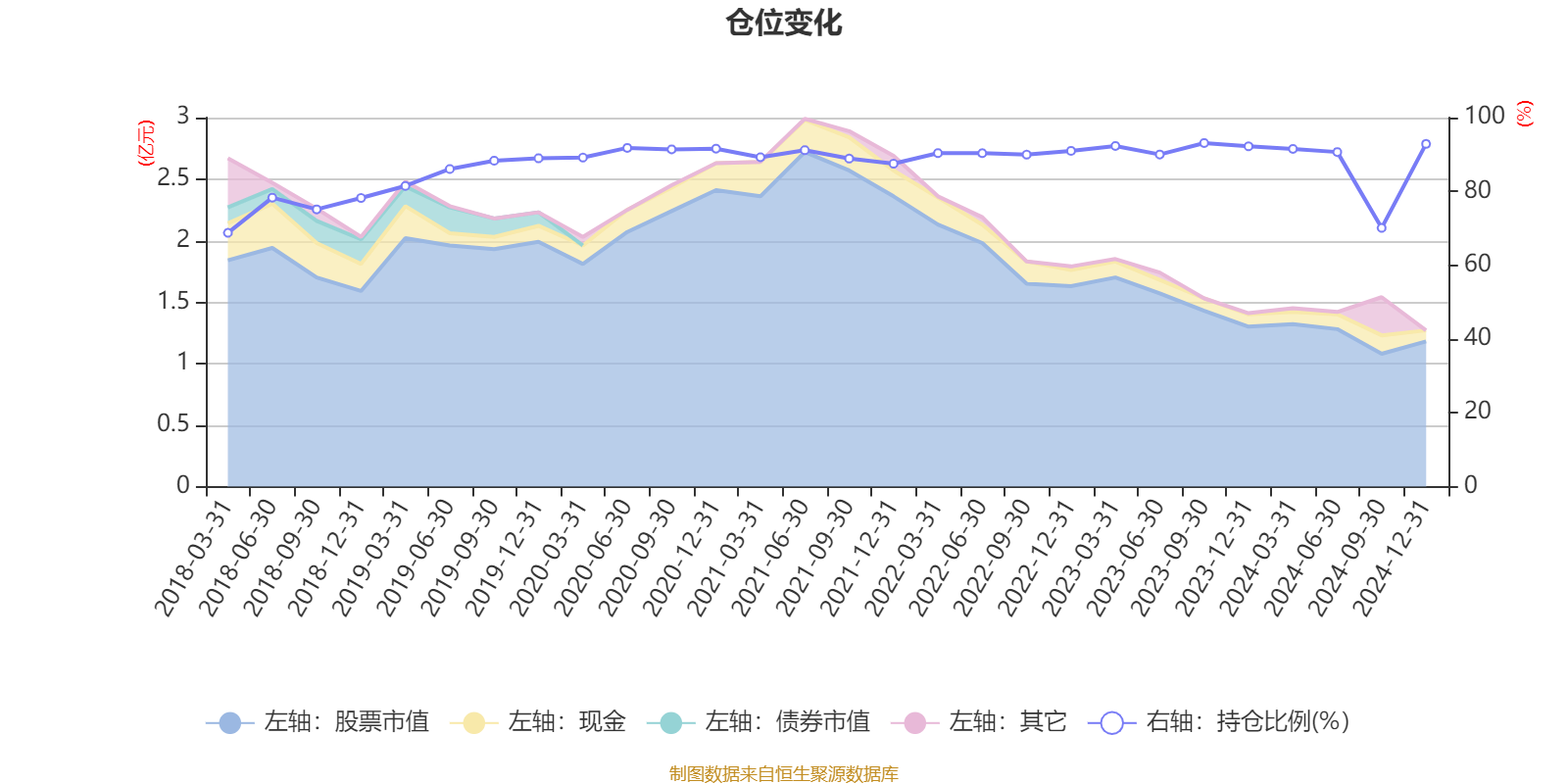据定期报告数据统计,近三年平均股票仓位为89.54%,同类平均为84.97%。2023年三季度末基金达到93.11%的最高仓位,2018年一季度末最低,为68.77%。