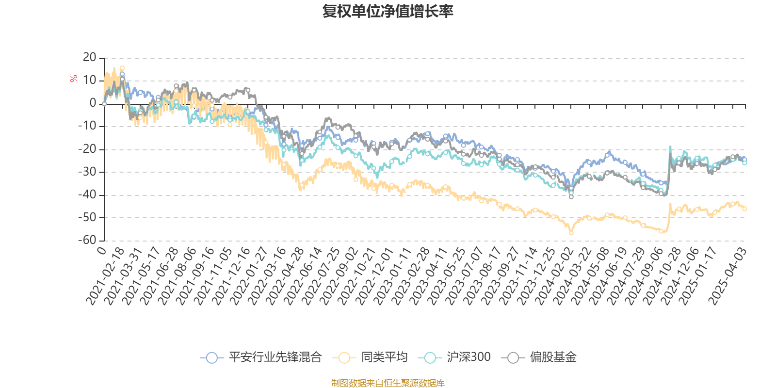 截至4月3日,平安行业先锋混合近三个月复权单位净值增长率为8.25%,位于同类可比基金220/646;近半年复权单位净值增长率为-0.67%,位于同类可比基金373/646;近一年复权单位净值增长率为0.81%,位于同类可比基金503/639;近三年复权单位净值增长率为-14.32%,位于同类可比基金245/488。