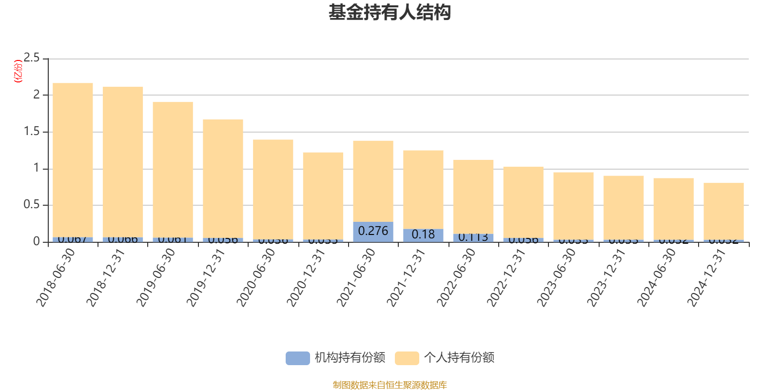 截至2024年12月31日,基金持有人共计8813户,合计持有8062.05万份。其中管理人员工持有18.48万份,占比0.23%,机构持有份额占比4.02%,个人投资者占比95.98%。