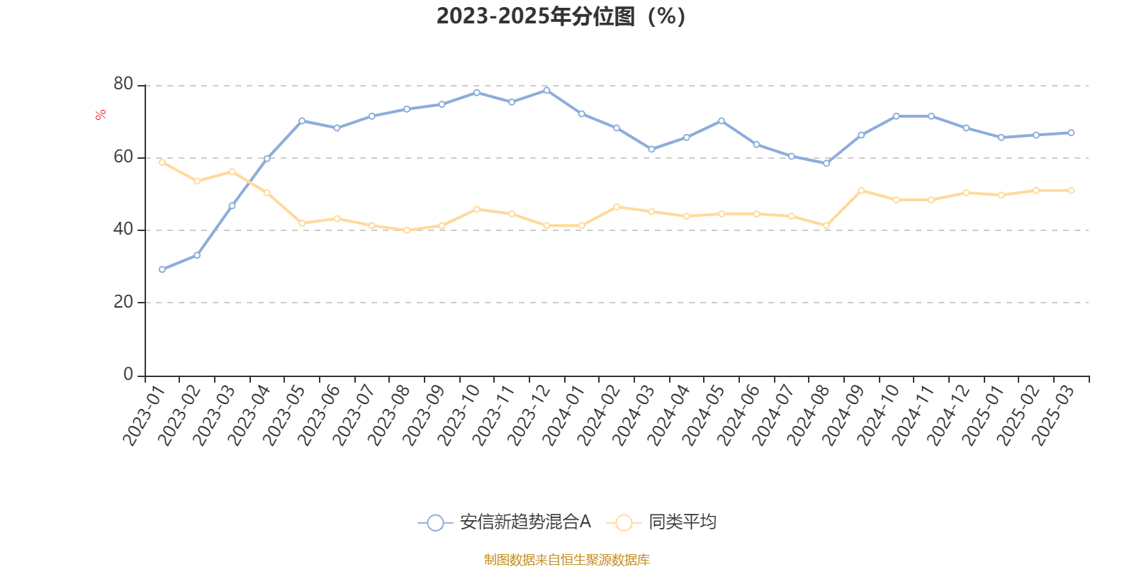通过所选区间该基金净值增长率分位图,可以观察该基金与同类基金业绩比较情况。图为坐标原点到区间内某时点的净值增长率在同类基金中的分位数。