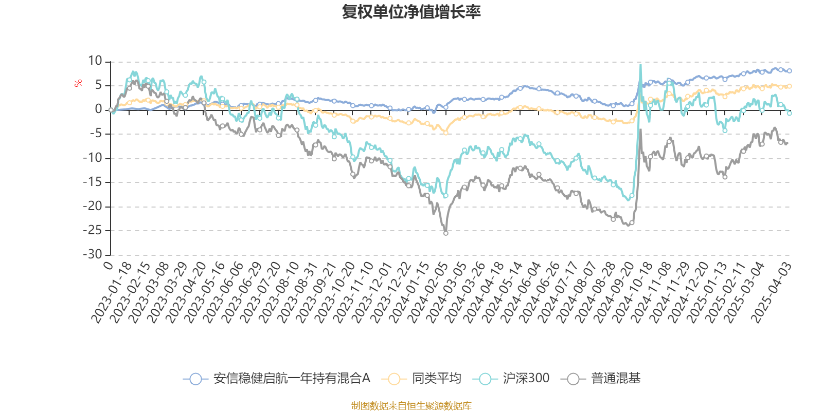 截至4月3日,安信稳健启航一年持有混合A近三个月复权单位净值增长率为1.43%,位于同类可比基金247/670;近半年复权单位净值增长率为2.39%,位于同类可比基金252/670;近一年复权单位净值增长率为5.62%,位于同类可比基金244/667。