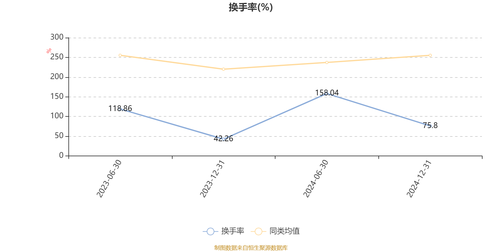 截至2024年12月31日,基金最近一年换手率约250.22%,持续低于同类均值。