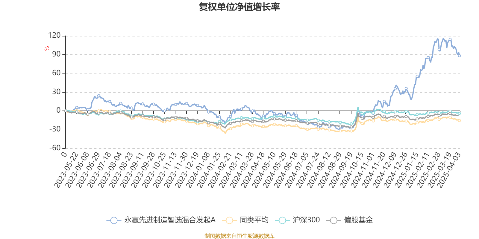 截至4月3日,永赢先进制造智选混合发起A近三个月复权单位净值增长率为57.70%,位于同类可比基金2/182;近半年复权单位净值增长率为96.04%,位于同类可比基金1/182;近一年复权单位净值增长率为96.23%,位于同类可比基金1/179。