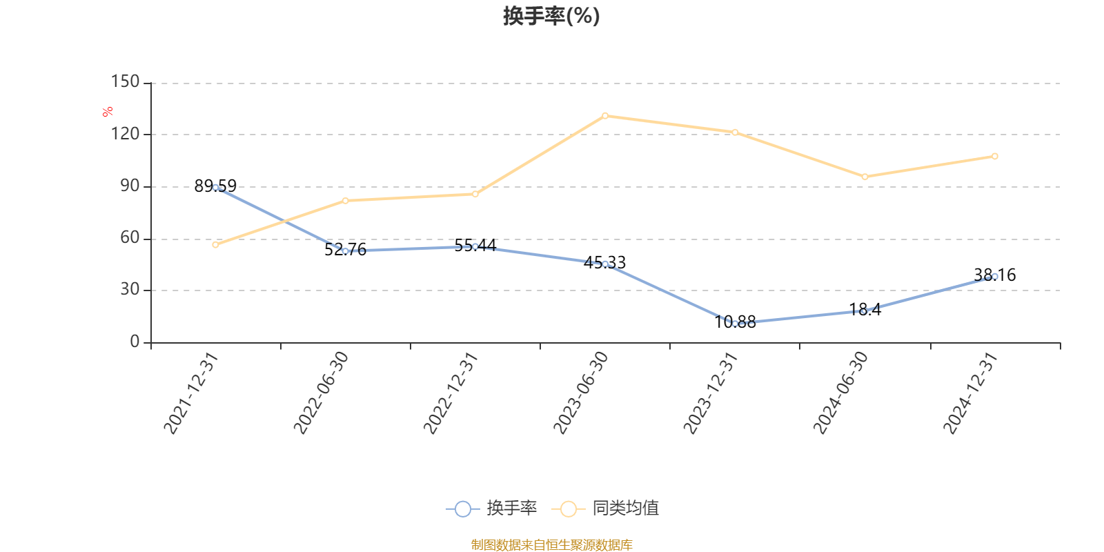 截至2024年12月31日,基金最近一年换手率约56.06%,持续3年低于同类均值。