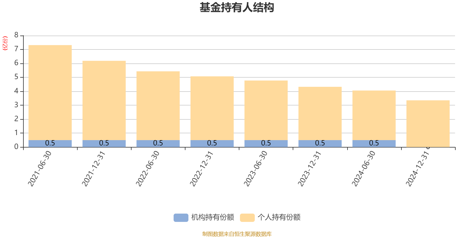 截至2024年12月31日,基金持有人共计5414户,合计持有3.35亿份。其中管理人员工持有377.5万份,占比1.13%,机构持有份额占比0.00%,个人投资者占比100.00%。