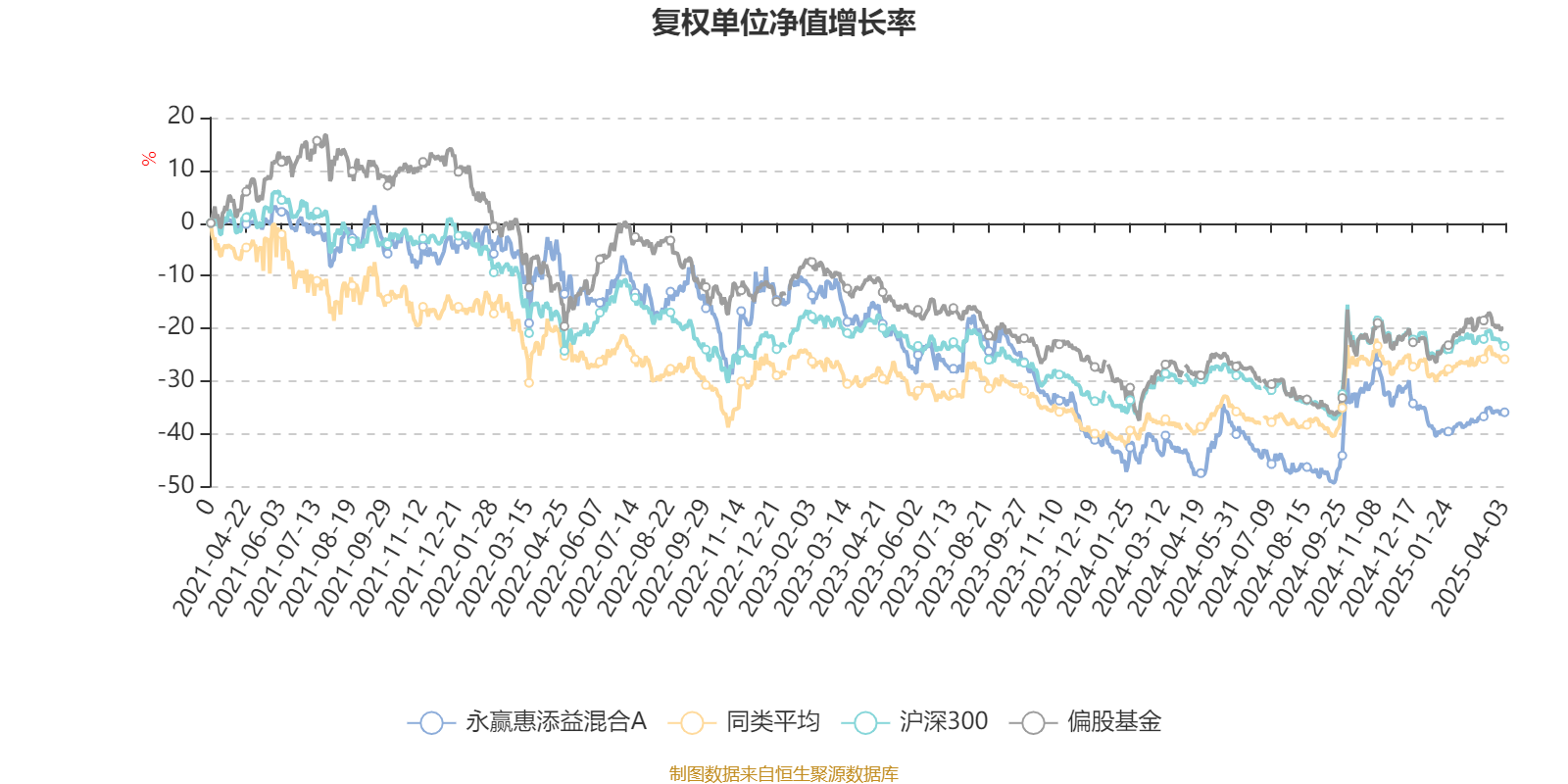 截至4月3日,永赢惠添益混合A近三个月复权单位净值增长率为3.84%,位于同类可比基金14/23;近半年复权单位净值增长率为-7.96%,位于同类可比基金20/23;近一年复权单位净值增长率为14.12%,位于同类可比基金15/22;近三年复权单位净值增长率为-32.52%,位于同类可比基金16/18。