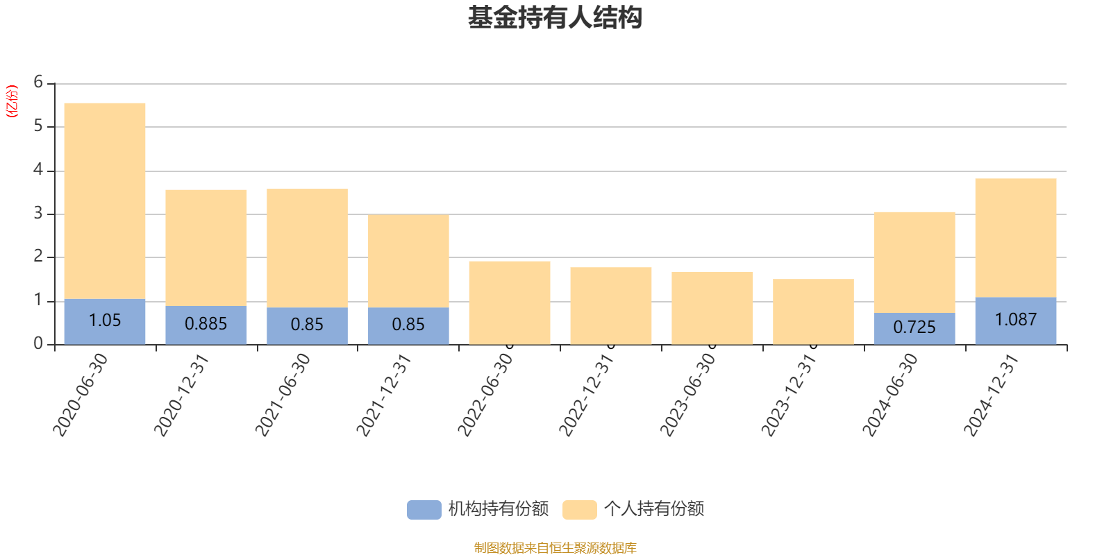 截至2024年12月31日,基金持有人共计1.88万户,合计持有3.81亿份。其中管理人员工持有147.24万份,占比0.39%,机构持有份额占比28.51%,个人投资者占比71.49%。