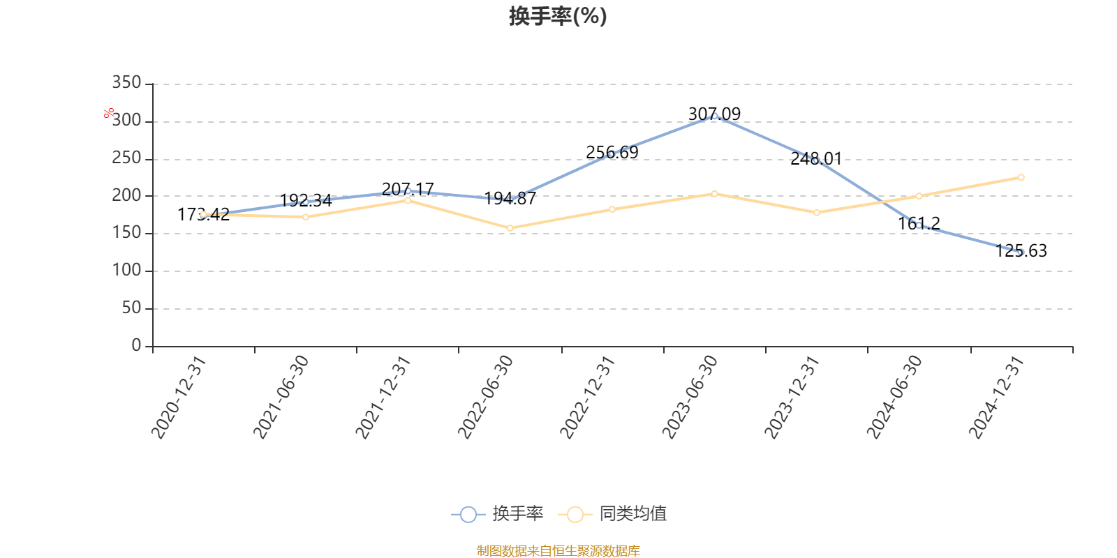 截至2024年12月31日,基金最近一年换手率约293.25%,持续1年低于同类均值。