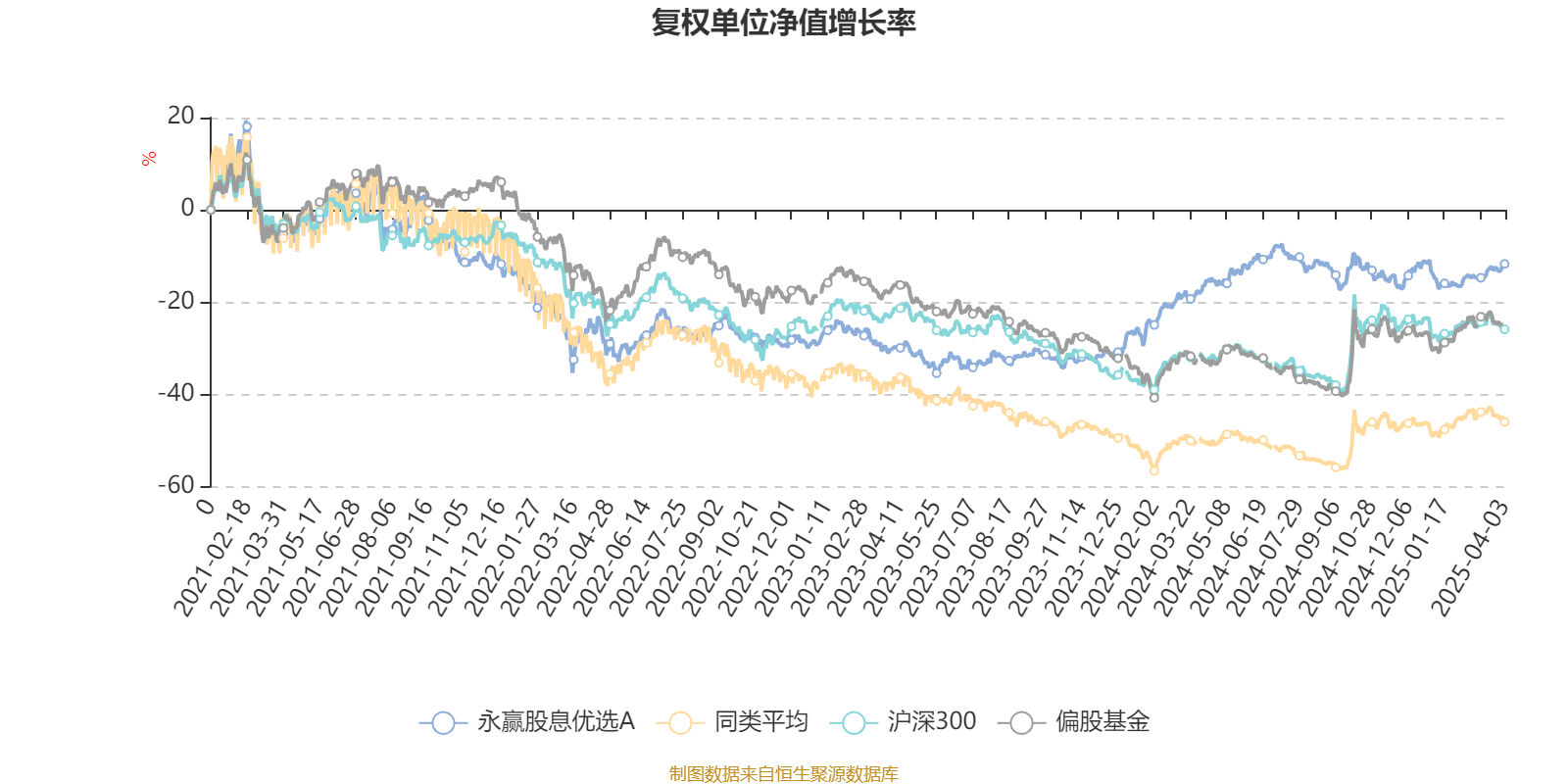 截至4月3日,永赢股息优选A近三个月复权单位净值增长率为2.30%,位于同类可比基金512/646;近半年复权单位净值增长率为-2.36%,位于同类可比基金440/646;近一年复权单位净值增长率为6.97%,位于同类可比基金381/639;近三年复权单位净值增长率为18.12%,位于同类可比基金29/488。