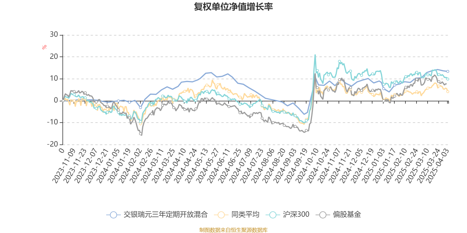 截至4月3日,交银瑞元三年定期开放混合近三个月复权单位净值增长率为7.47%,位于同类可比基金20/91;近半年复权单位净值增长率为1.27%,位于同类可比基金15/91;近一年复权单位净值增长率为4.52%,位于同类可比基金30/91。