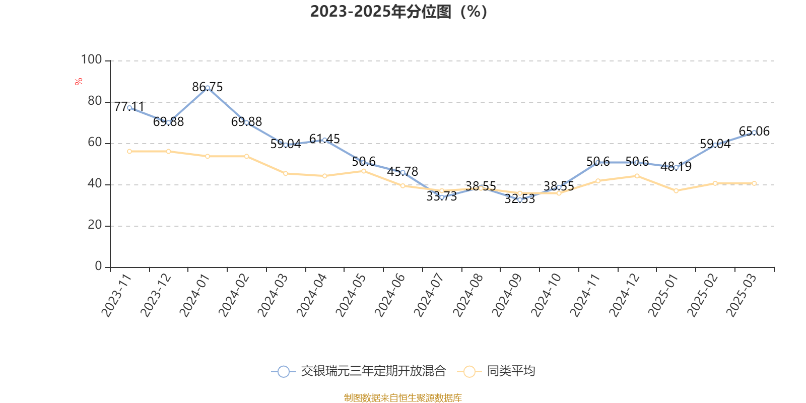 通过所选区间该基金净值增长率分位图,可以观察该基金与同类基金业绩比较情况。图为坐标原点到区间内某时点的净值增长率在同类基金中的分位数。