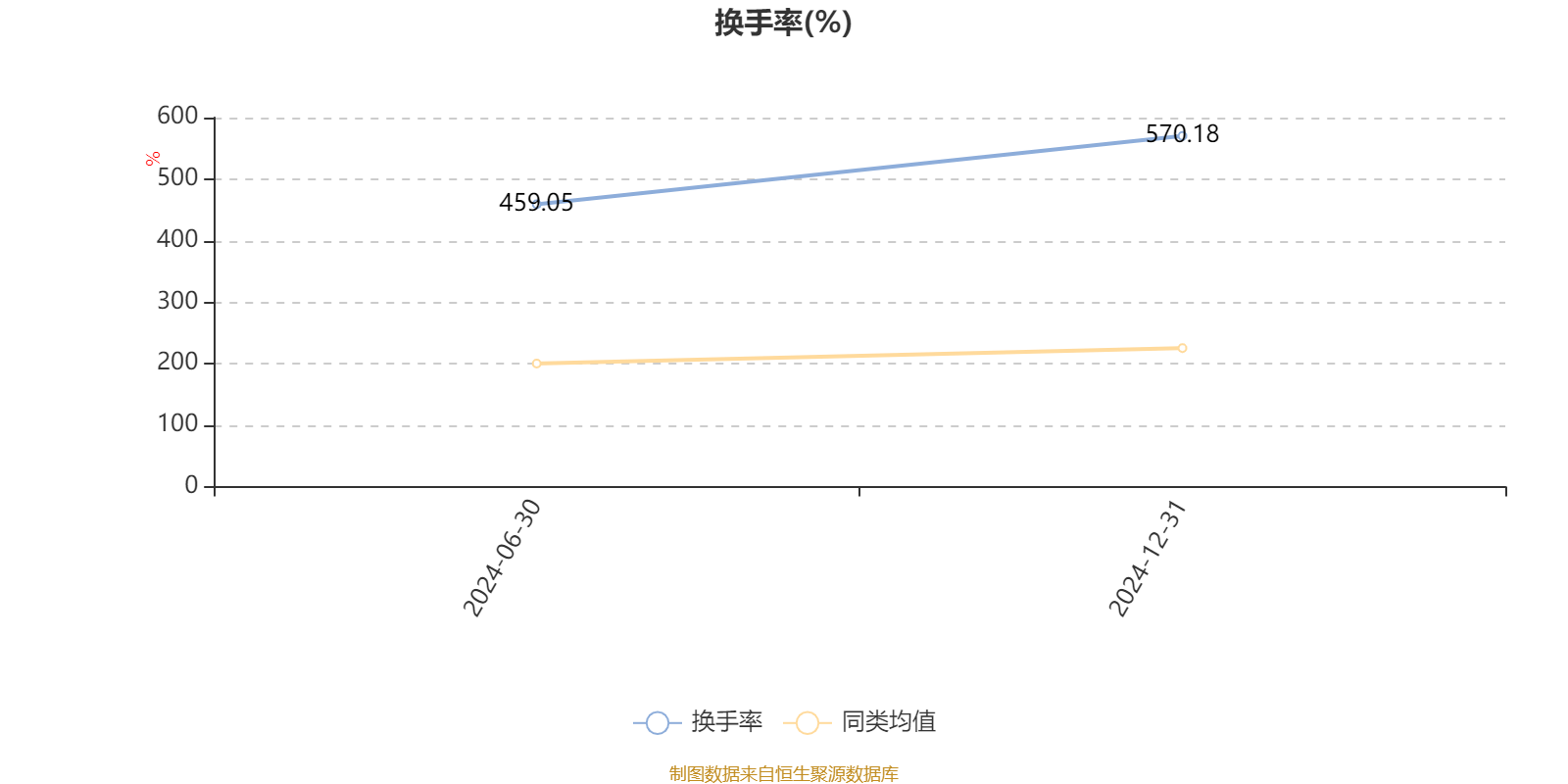 截至2024年12月31日,基金最近一年换手率约1057.75%,持续高于同类均值。