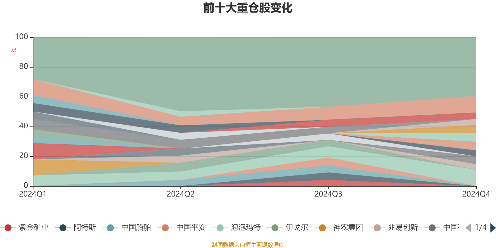 该基金持股集中度较高。截至2024年末,基金十大重仓股分别是嘉益股份、泡泡玛特、海光信息、上汽集团、康方生物、中国有色矿业、柳工、宁德时代、神马电力、兆易创新。