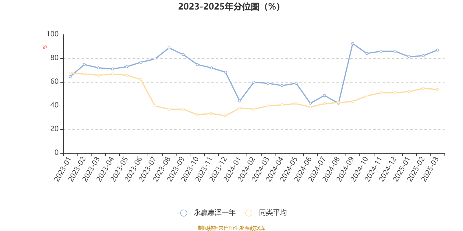 通过所选区间该基金净值增长率分位图,可以观察该基金与同类基金业绩比较情况。图为坐标原点到区间内某时点的净值增长率在同类基金中的分位数。