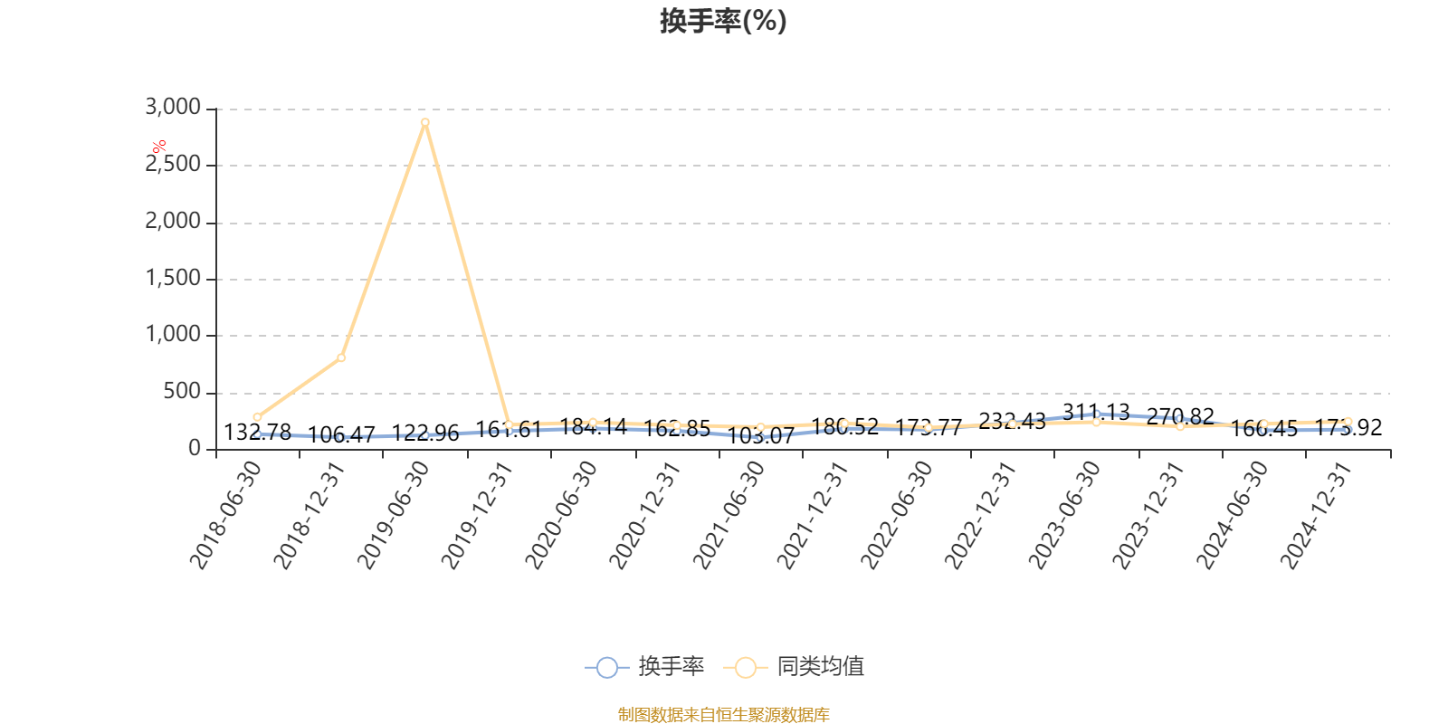 截至2024年12月31日,基金最近一年换手率约343.52%,持续1年低于同类均值。