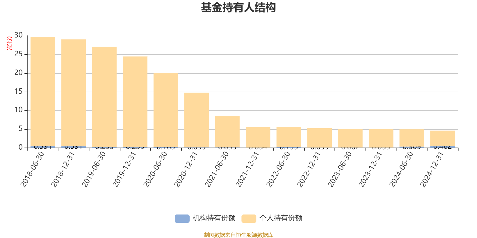截至2024年12月31日,基金持有人共计1.05万户,合计持有4.59亿份。其中管理人员工持有220.82万份,占比0.48%,机构持有份额占比10.07%,个人投资者占比89.93%。