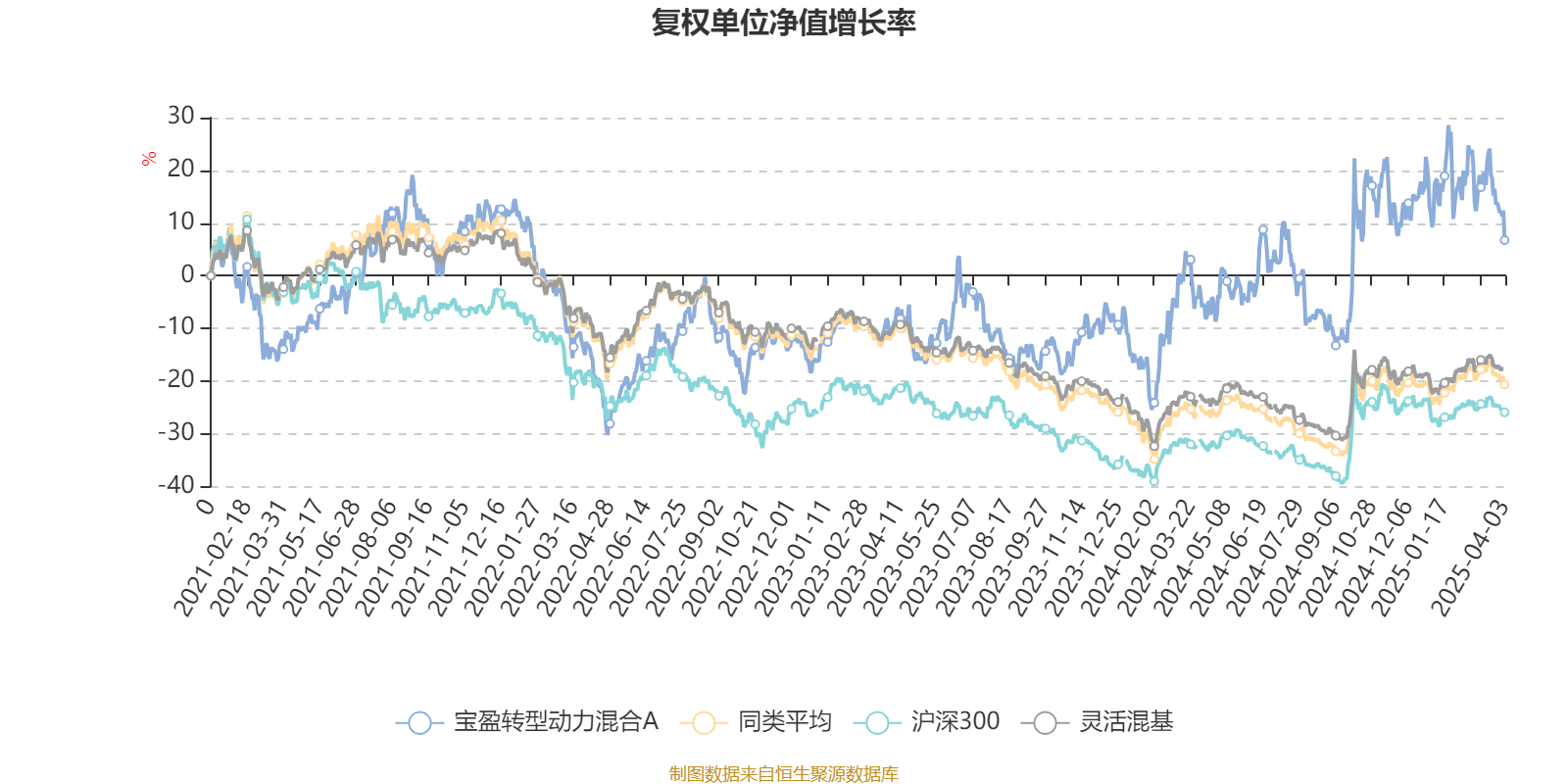 截至4月3日,宝盈转型动力混合A近三个月复权单位净值增长率为-2.23%,位于同类可比基金878/918;近半年复权单位净值增长率为-1.11%,位于同类可比基金471/918;近一年复权单位净值增长率为13.51%,位于同类可比基金221/918;近三年复权单位净值增长率为23.18%,位于同类可比基金21/901。