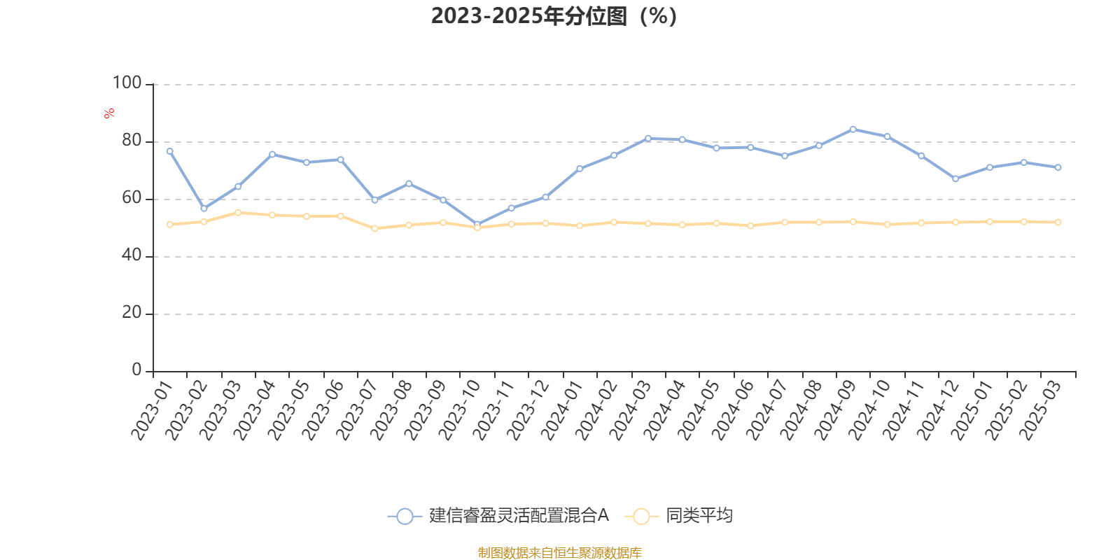 通过所选区间该基金净值增长率分位图,可以观察该基金与同类基金业绩比较情况。图为坐标原点到区间内某时点的净值增长率在同类基金中的分位数。