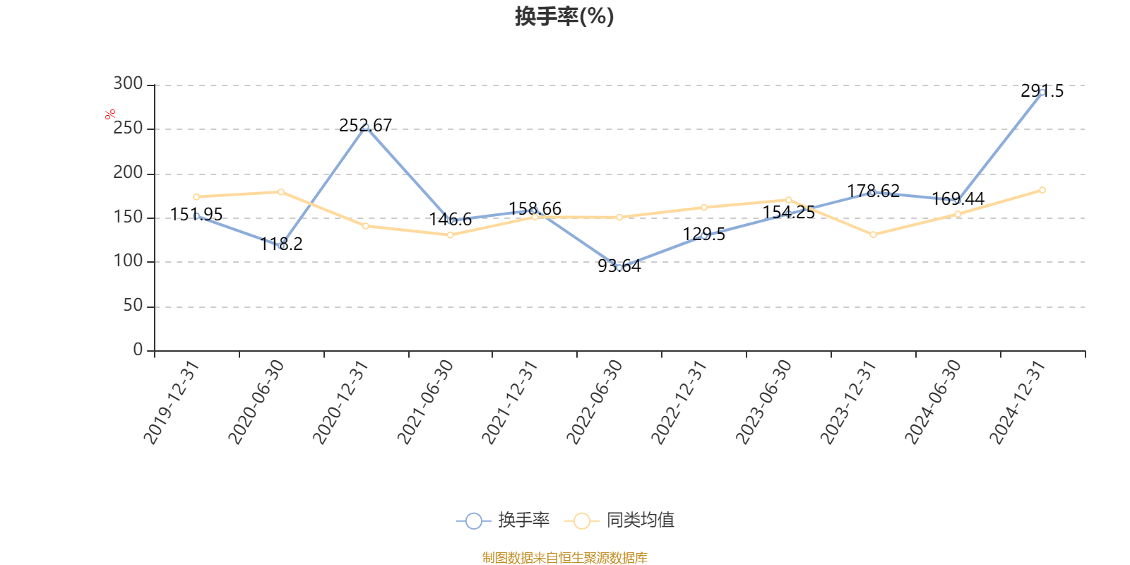 截至2024年12月31日,基金最近一年换手率约460.86%,持续1年高于同类均值。