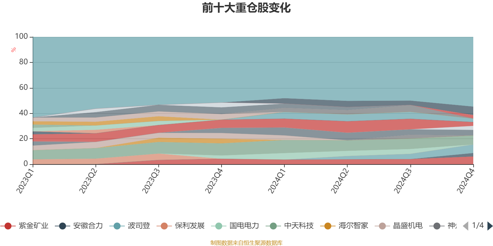 截至2024年末,基金十大重仓股分别是中天科技、波司登、中国移动、紫金矿业、江苏银行、新锐股份、亨通光电、蓝天燃气、兖矿能源、安徽合力。