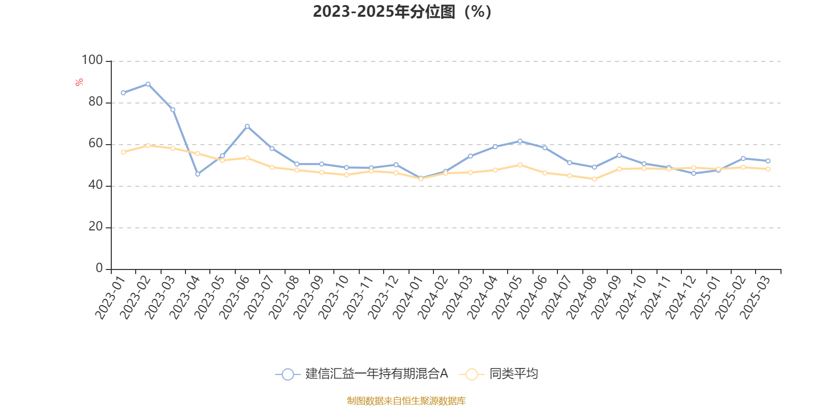 通过所选区间该基金净值增长率分位图,可以观察该基金与同类基金业绩比较情况。图为坐标原点到区间内某时点的净值增长率在同类基金中的分位数。