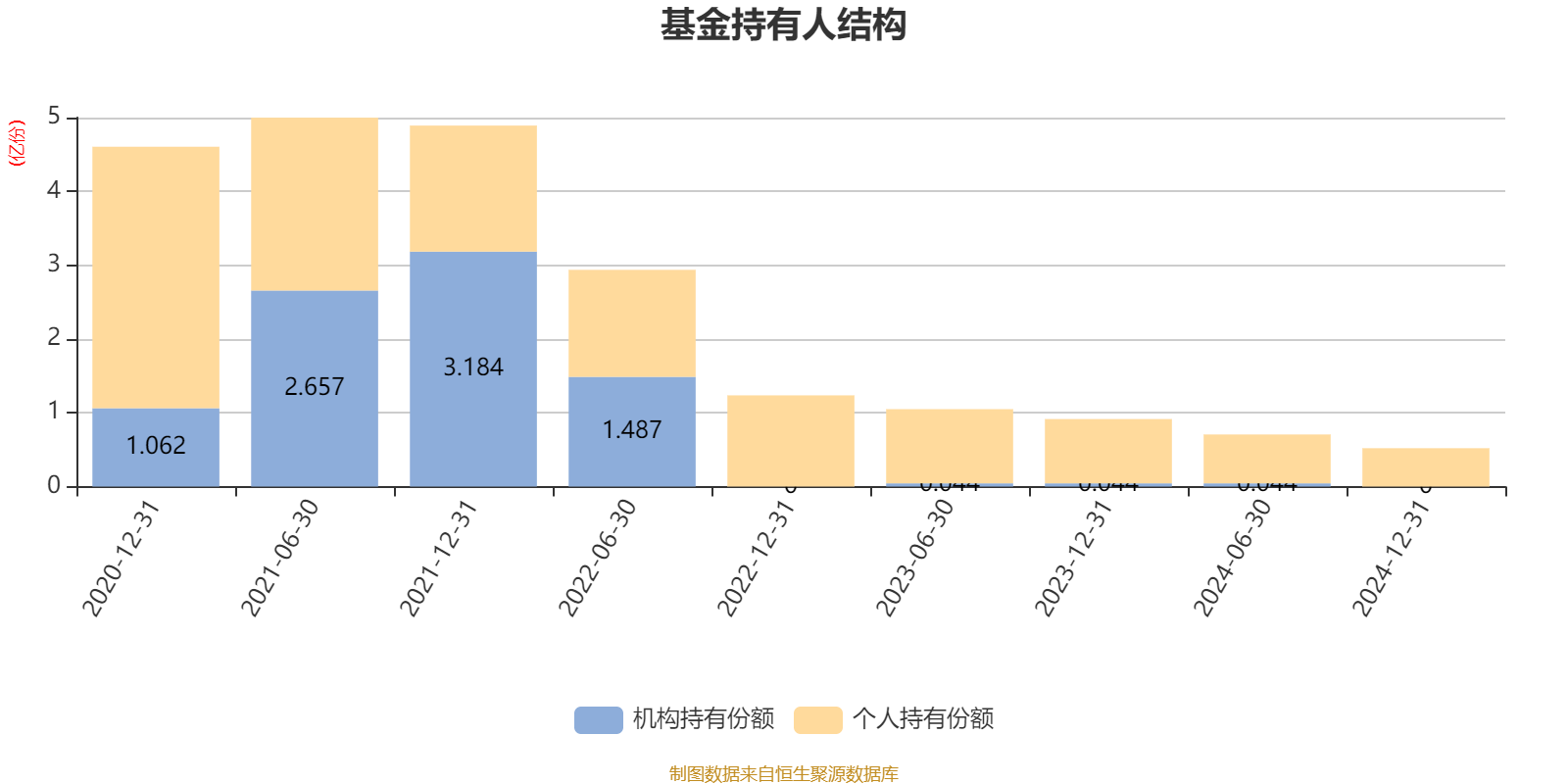 截至2024年12月31日,基金持有人共计765户,合计持有5204.46万份。其中管理人员工持有1.28万份,占比0.02%,机构持有份额占比0.00%,个人投资者占比100.00%。