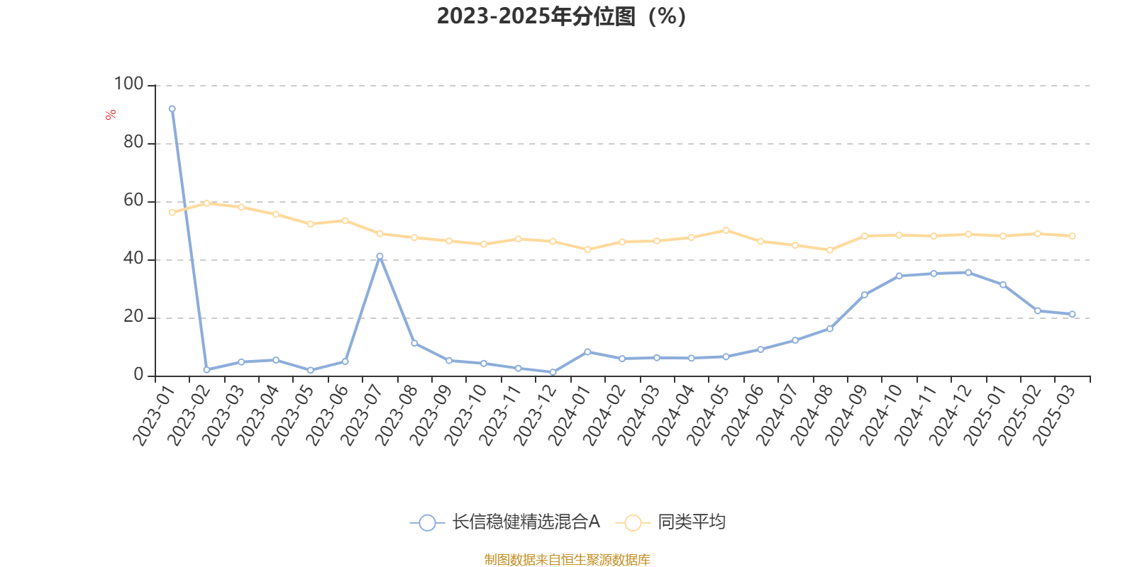 通过所选区间该基金净值增长率分位图,可以观察该基金与同类基金业绩比较情况。图为坐标原点到区间内某时点的净值增长率在同类基金中的分位数。