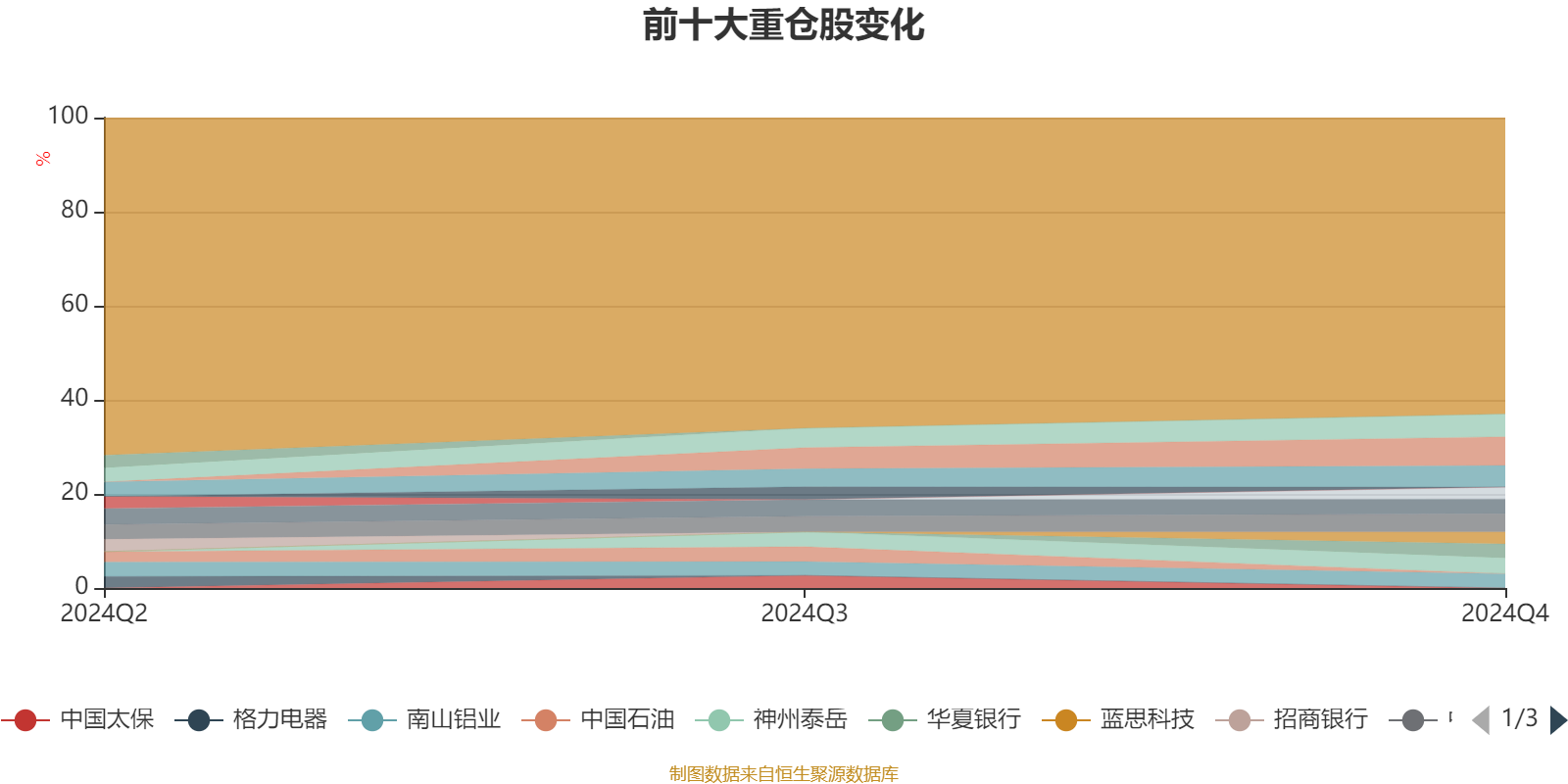 截至2024年末,基金十大重仓股分别是宁德时代、华泰证券、浦发银行、中国平安、神州泰岳、五粮液、南山铝业、华夏银行、蓝思科技、云天化。