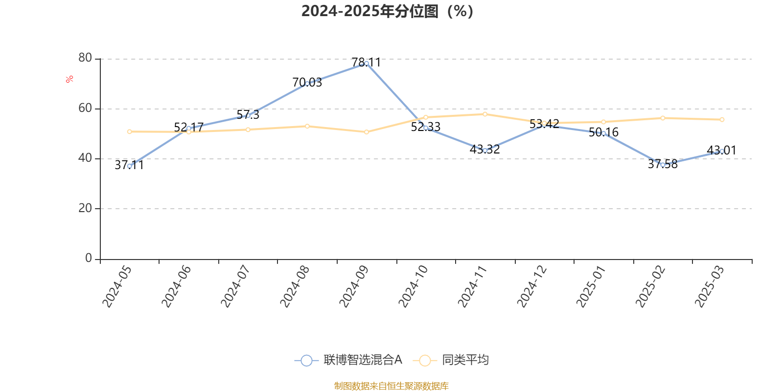 通过所选区间该基金净值增长率分位图,可以观察该基金与同类基金业绩比较情况。图为坐标原点到区间内某时点的净值增长率在同类基金中的分位数。