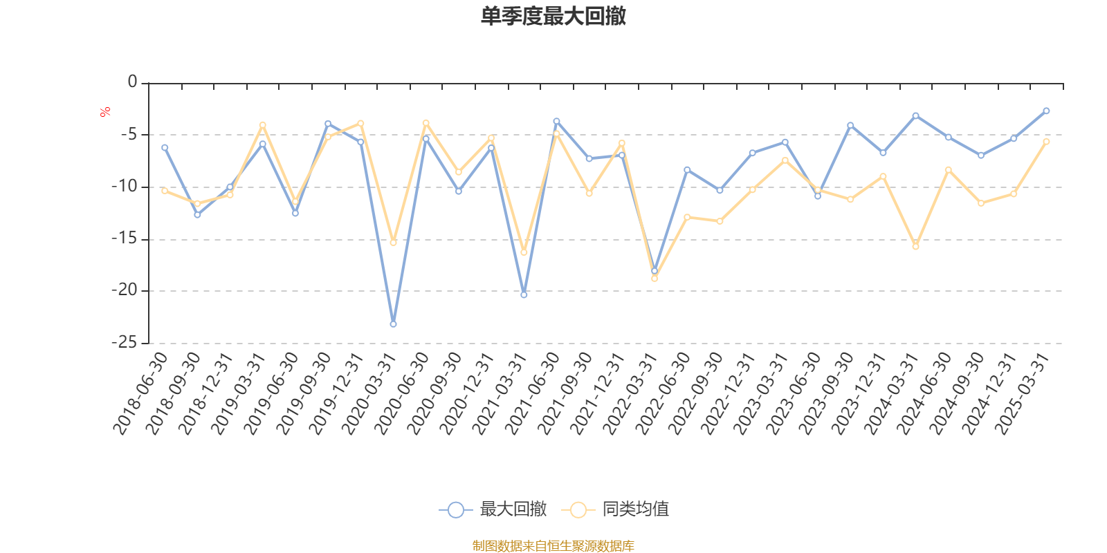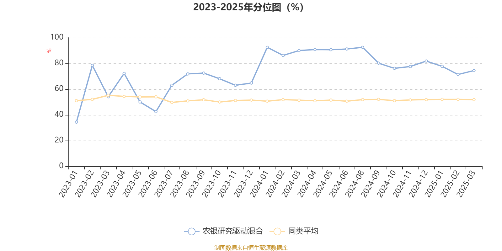 通过所选区间该基金净值增长率分位图,可以观察该基金与同类基金业绩比较情况。图为坐标原点到区间内某时点的净值增长率在同类基金中的分位数。
