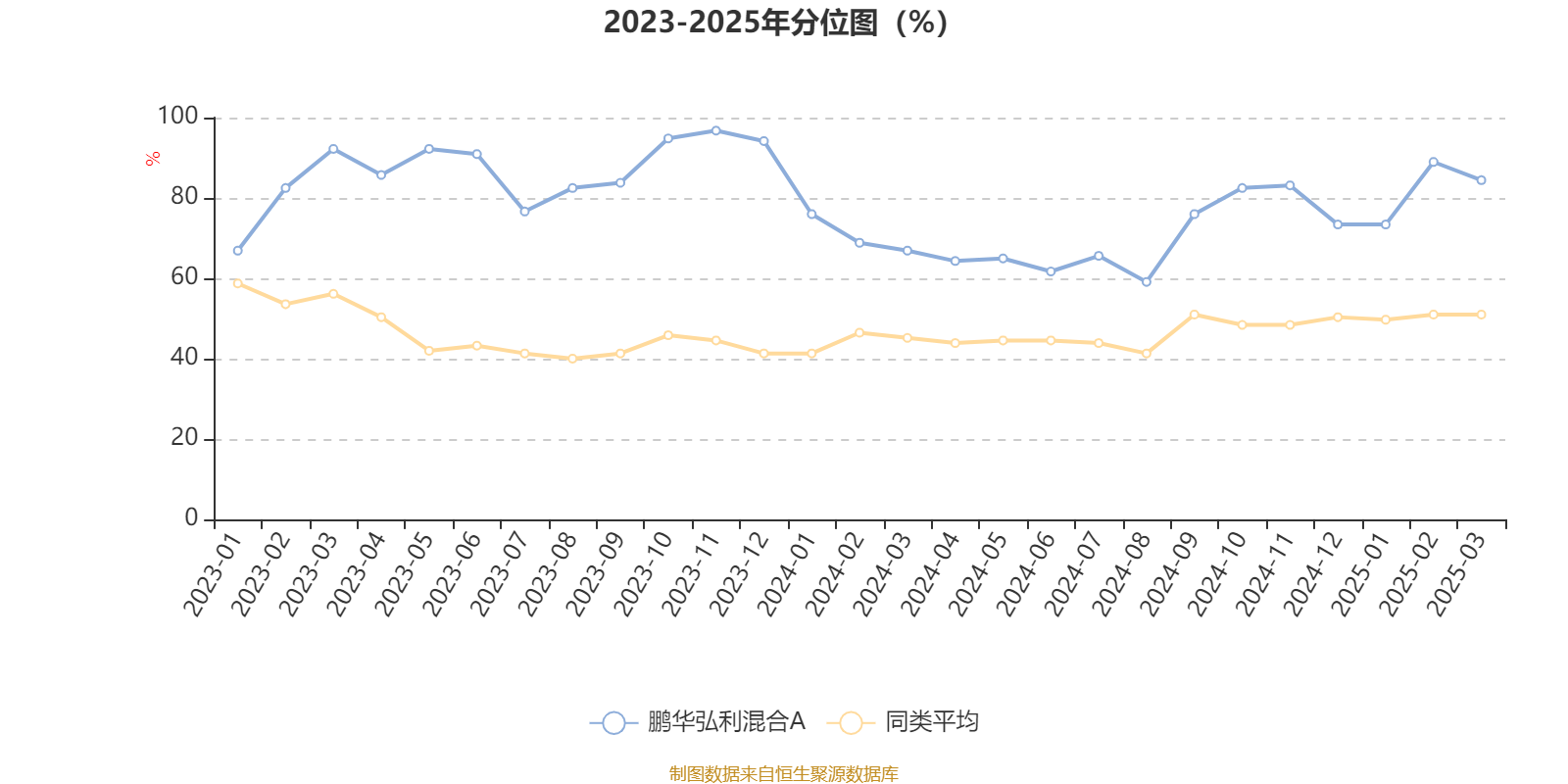 通过所选区间该基金净值增长率分位图,可以观察该基金与同类基金业绩比较情况。图为坐标原点到区间内某时点的净值增长率在同类基金中的分位数。