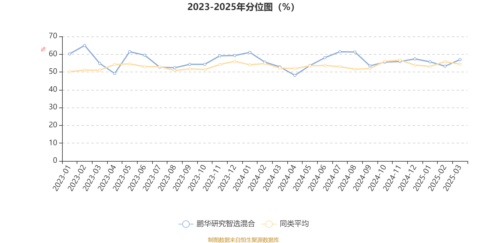 通过所选区间该基金净值增长率分位图,可以观察该基金与同类基金业绩比较情况。图为坐标原点到区间内某时点的净值增长率在同类基金中的分位数。