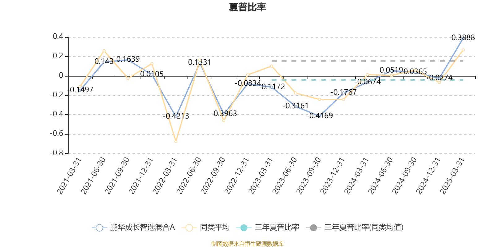 截至3月31日,基金近三年夏普比率为-0.043,位于同类可比基金102/133。