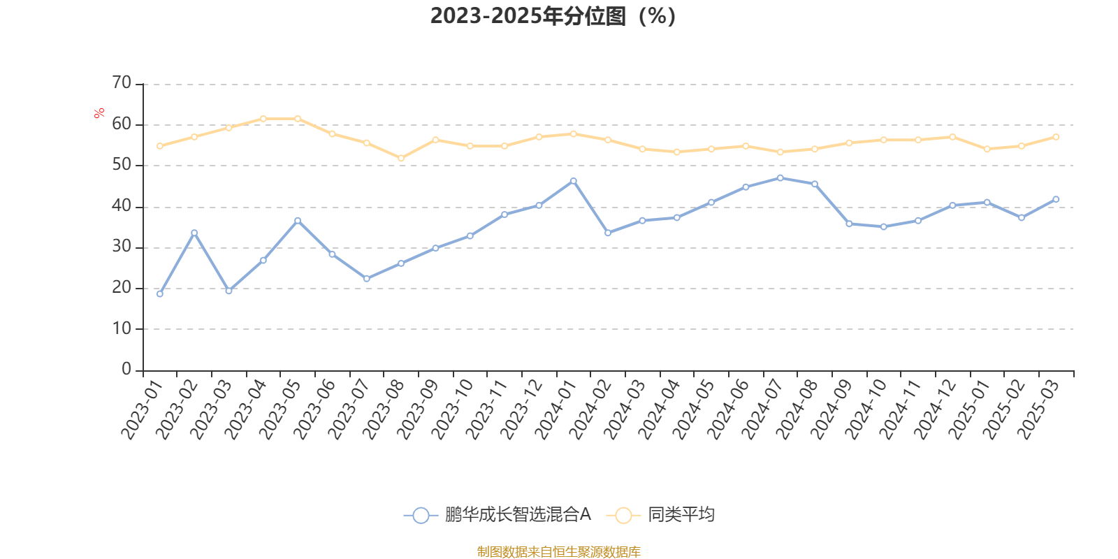 通过所选区间该基金净值增长率分位图,可以观察该基金与同类基金业绩比较情况。图为坐标原点到区间内某时点的净值增长率在同类基金中的分位数。