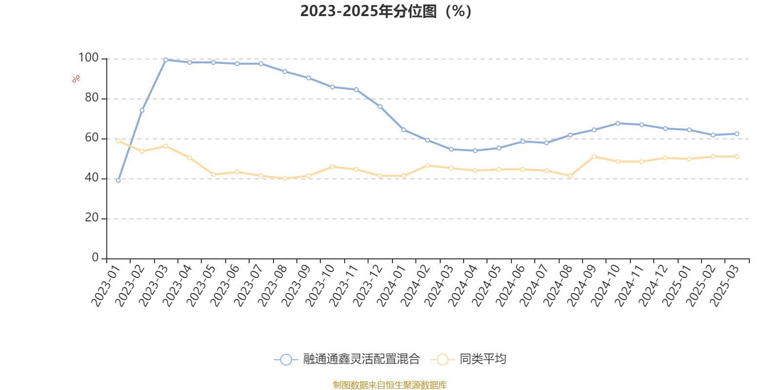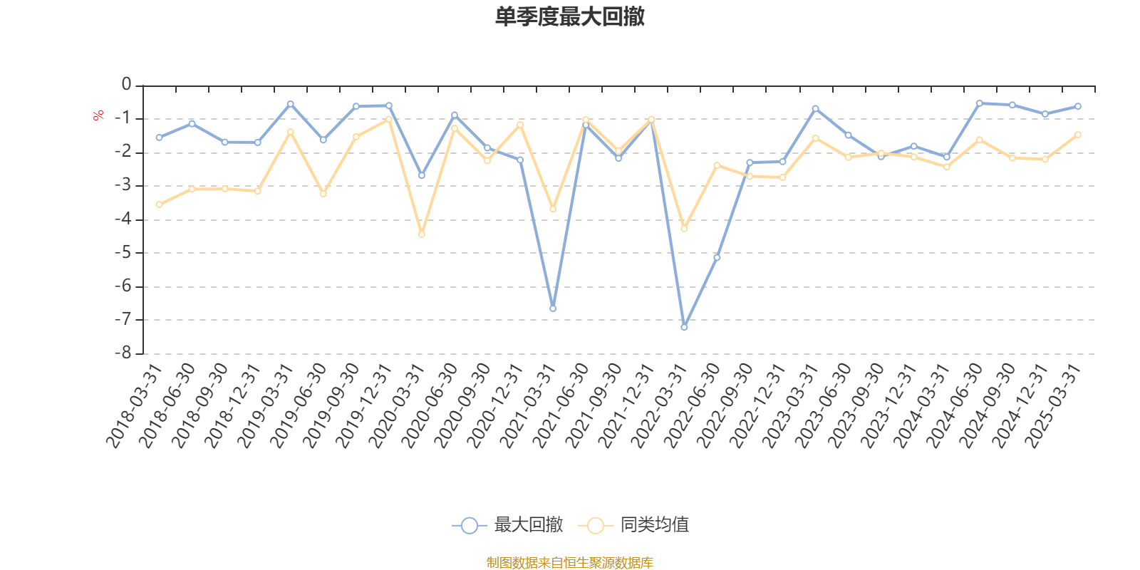 通过所选区间该基金净值增长率分位图,可以观察该基金与同类基金业绩比较情况。图为坐标原点到区间内某时点的净值增长率在同类基金中的分位数。