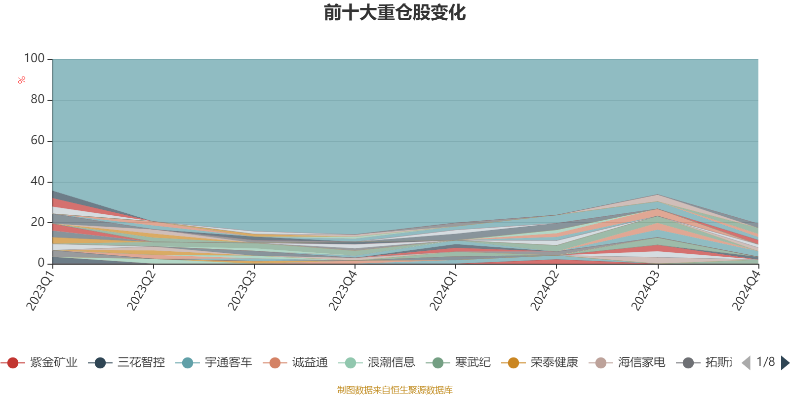 截至2024年末,基金十大重仓股分别是东方财富、宁德时代、德科立、润泽科技、寒武纪、海光信息、紫光股份、立讯精密、新易盛、光迅科技。