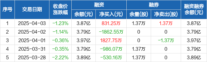 新时达融资融券信息显示,2025年4月3日融资净买入831.25万元;融资余额3.87亿元,较前一日增加2.19%。