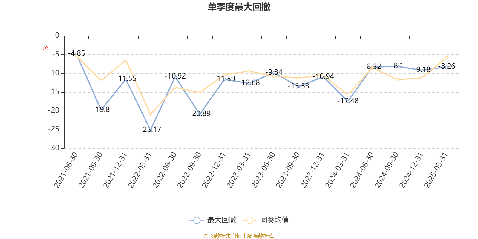 通过所选区间该基金净值增长率分位图,可以观察该基金与同类基金业绩比较情况。图为坐标原点到区间内某时点的净值增长率在同类基金中的分位数。