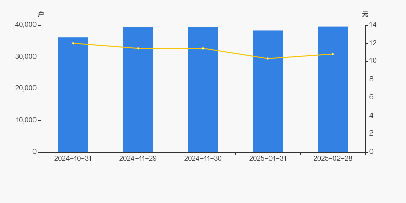 截至2025年2月28日,公司最新总股本为5.32亿股,其中流通股本为4.78亿股。户均持有流通股数量由上期的1.25万股下降至1.21万股,户均流通市值13.08万元。