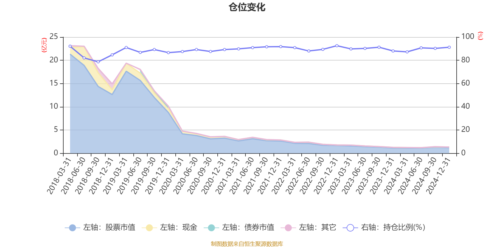 据定期报告数据统计,近三年平均股票仓位为89.97%,同类平均为84.97%。2022年末基金达到92.56%的最高仓位,2018年三季度末最低,为78.69%。