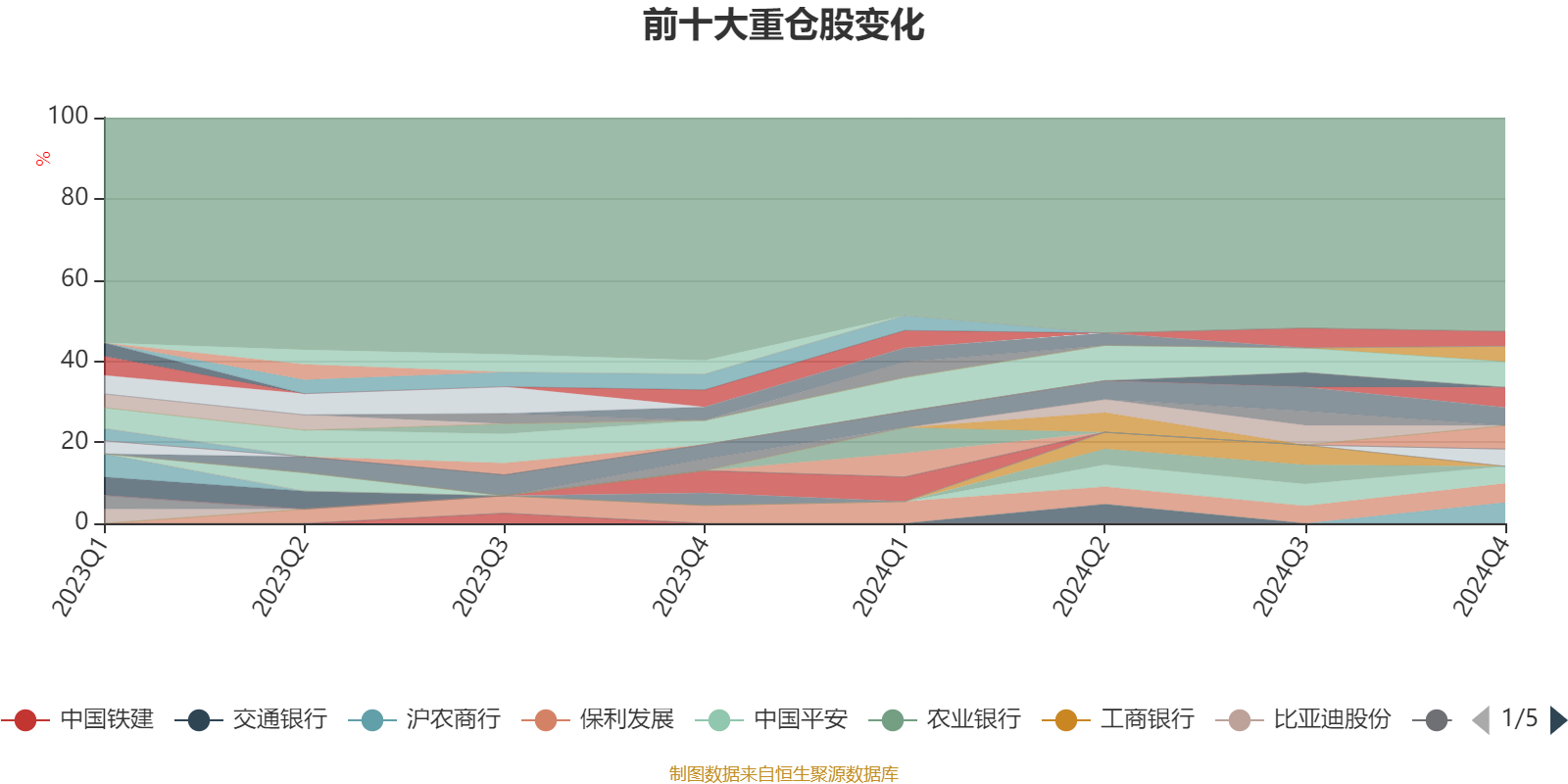 截至2024年末,基金十大重仓股分别是招商银行、江苏银行、沪农商行、杭州银行、保利发展、招商蛇口、中国平安、海尔智家、中国海油、北方华创。