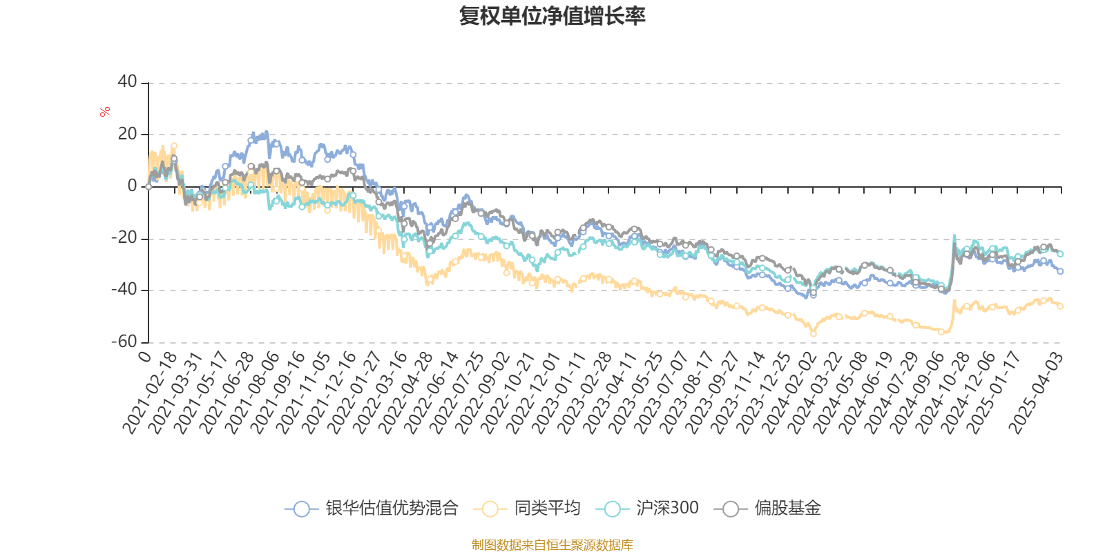截至4月3日,银华估值优势混合近三个月复权单位净值增长率为-1.42%,位于同类可比基金616/646;近半年复权单位净值增长率为-8.86%,位于同类可比基金596/646;近一年复权单位净值增长率为7.54%,位于同类可比基金364/639;近三年复权单位净值增长率为-28.14%,位于同类可比基金408/488。